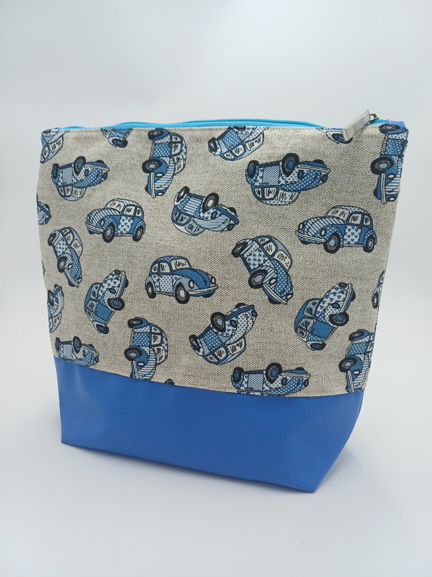 Bewahren Sie Ihre Pflegeutensilien oder kleine Strickprojekte in dieser einzigartigen Kosmetiktasche oder Projekttasche auf. Mit einem geräumigen Innenfutter aus Baumwolle ist die Tasche nicht nur praktisch, sondern auch stilvoll. Hergestellt aus Baumwolle, Kunstleder und Canvas, bietet sie ausreichend Platz für all Ihre Gegenstände.