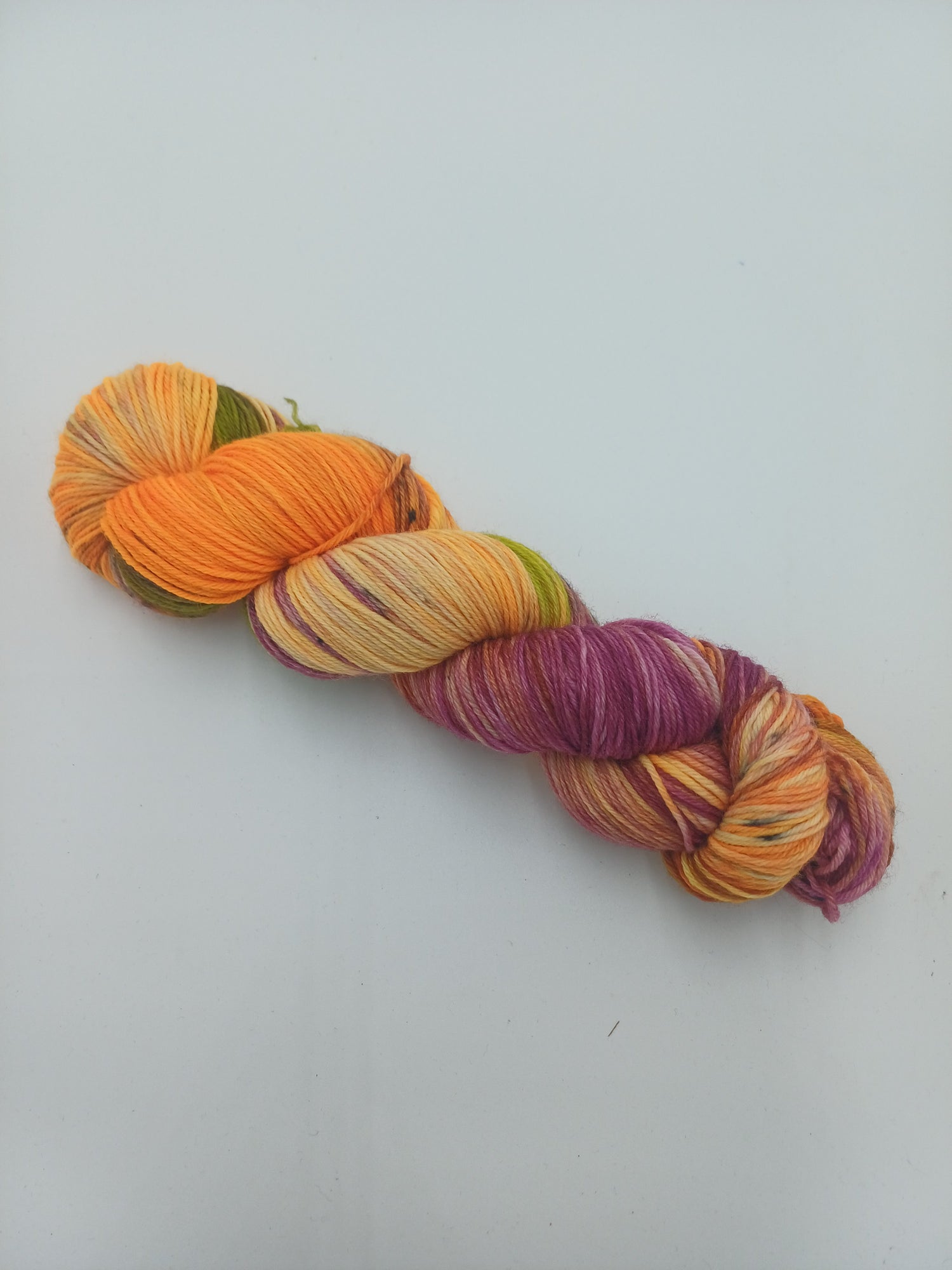 Optional hast du die Möglichkeit einen exklusiv von "Das Oderdeichschaf" gefärbten Strang Sockenwolle(Die Softsocks) mit zu erwerben.(Auf dem Bild siehst du die Probefärbung, damit du weist welcher Farbton dich erwartet. )