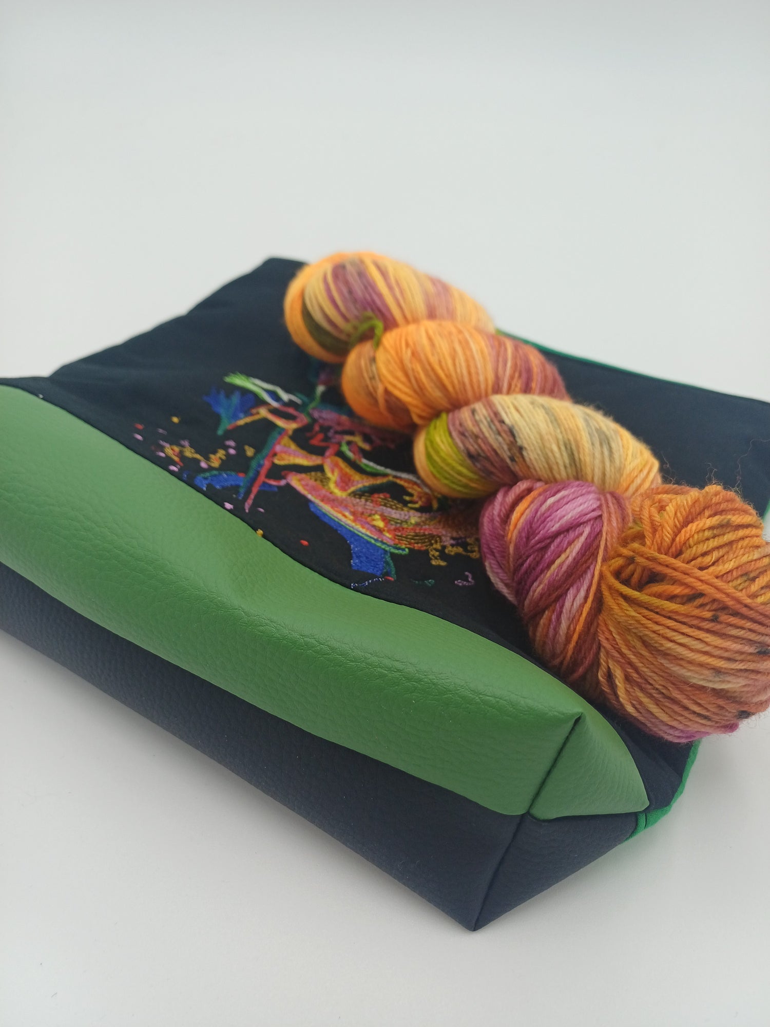 Reserviere jetzt die einzigartige Kleine Projectbag Halloween mit schönen Stickmotiv! Optional mit einem handgefärbten Strang Sockenwolle von Das Oderdeichschaf.