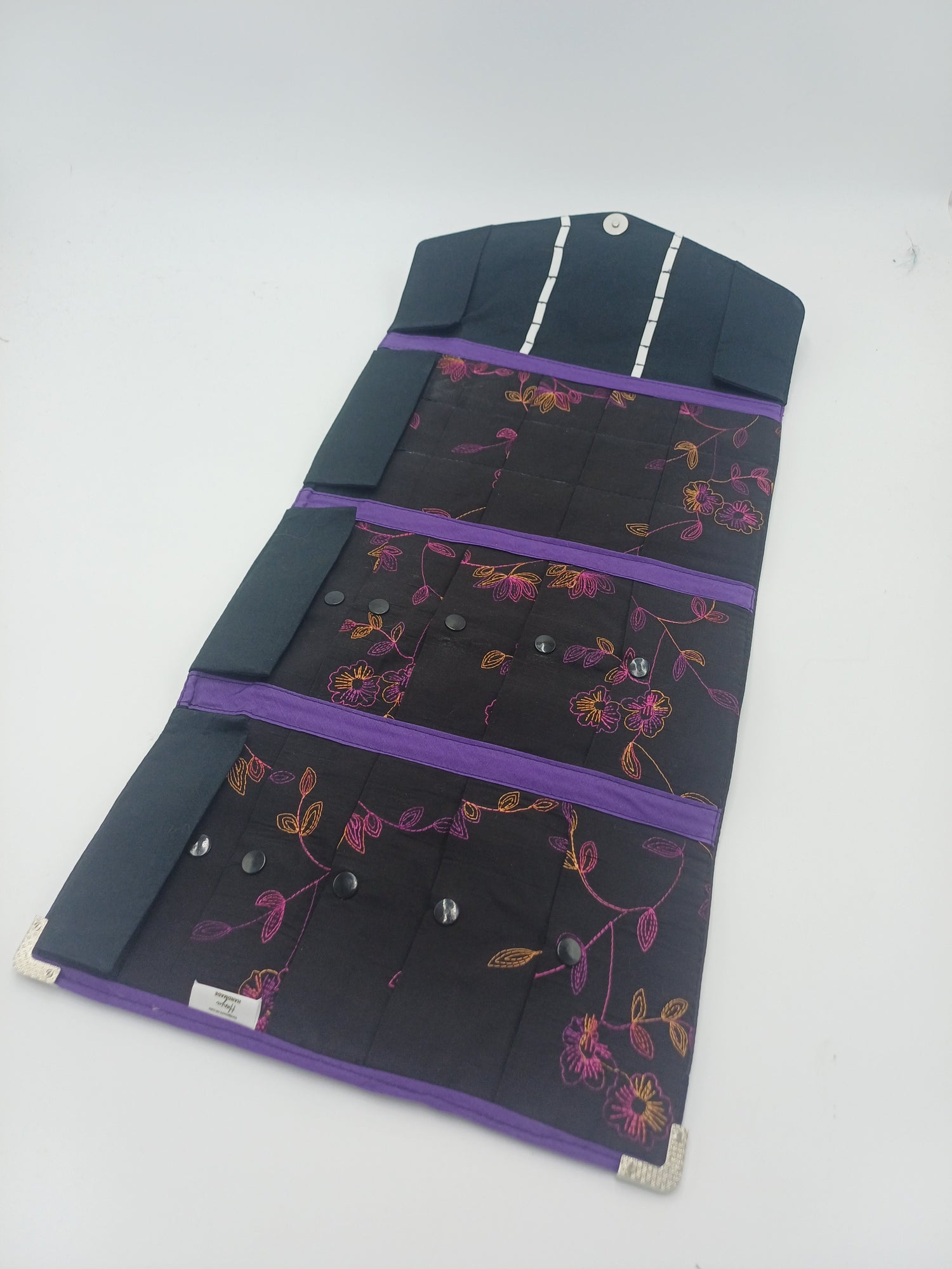 Entdecke die praktische und stilvolle Nadeltasche, die speziell für Stricker und Häkler entwickelt wurde. Die Tasche ist aus Kunstleder und Baumwolle gefertigt, und bietet eine ideale Lösung für die sichere und ordentliche Aufbewahrung deiner Nadeln und Zubehör.