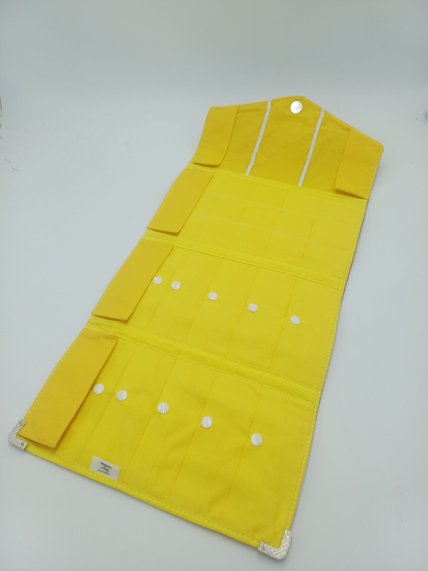 Die Tasche verfügt über Druckknöpfe, und ein Reißverschlussfach auf der Rückseite, um deine Utensilien sicher zu verstauen.